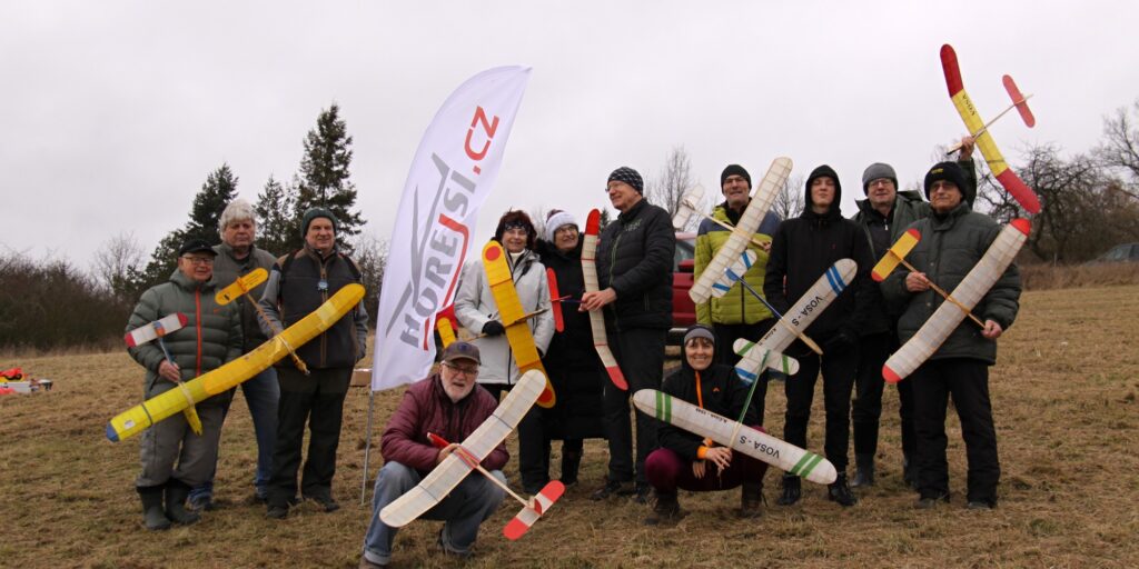 12. ročník naší místní modelářské soutěže s modely Vosa na svahu je definitivně minulostí. Poslední 4. kolo jsme odlétali se štěstím, doslova mezi kapkami deště. Po mrazivých dnech se sněhem přecházela v Plzni fronta s větrem v nárazech okolo 10 m/sec a celý den se vyskytovaly dešťové přeháňky. Teplota kolem 8°C, pocitově kolem 3 stupňů…. Za daného počasí se dostavilo celkem 12 soutěžících. Na závěrečném kole se sponzorsky podílela i firma Hořejší model s.r.o. a tak jsme se vůbec poprvé v historii klání na Sylvánu mohli vyfotit pod jejím bannerem.